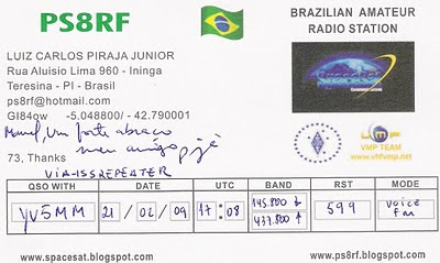 PS8RF - DON LUIZ CARLOS PIRAJA DE TERESINA, PIAUI - BRASIL. AMIGO INVISIBLE Y DEL AIRE DESDE HACE MUCHO TIEMPO. LUIZ SIEMPRE ESTA PENDIENTE DE LOS SATELITES Y DE LA ISS. - BIENVENIDO A YV SAT LUIZ.- ENVIA LA FOTO